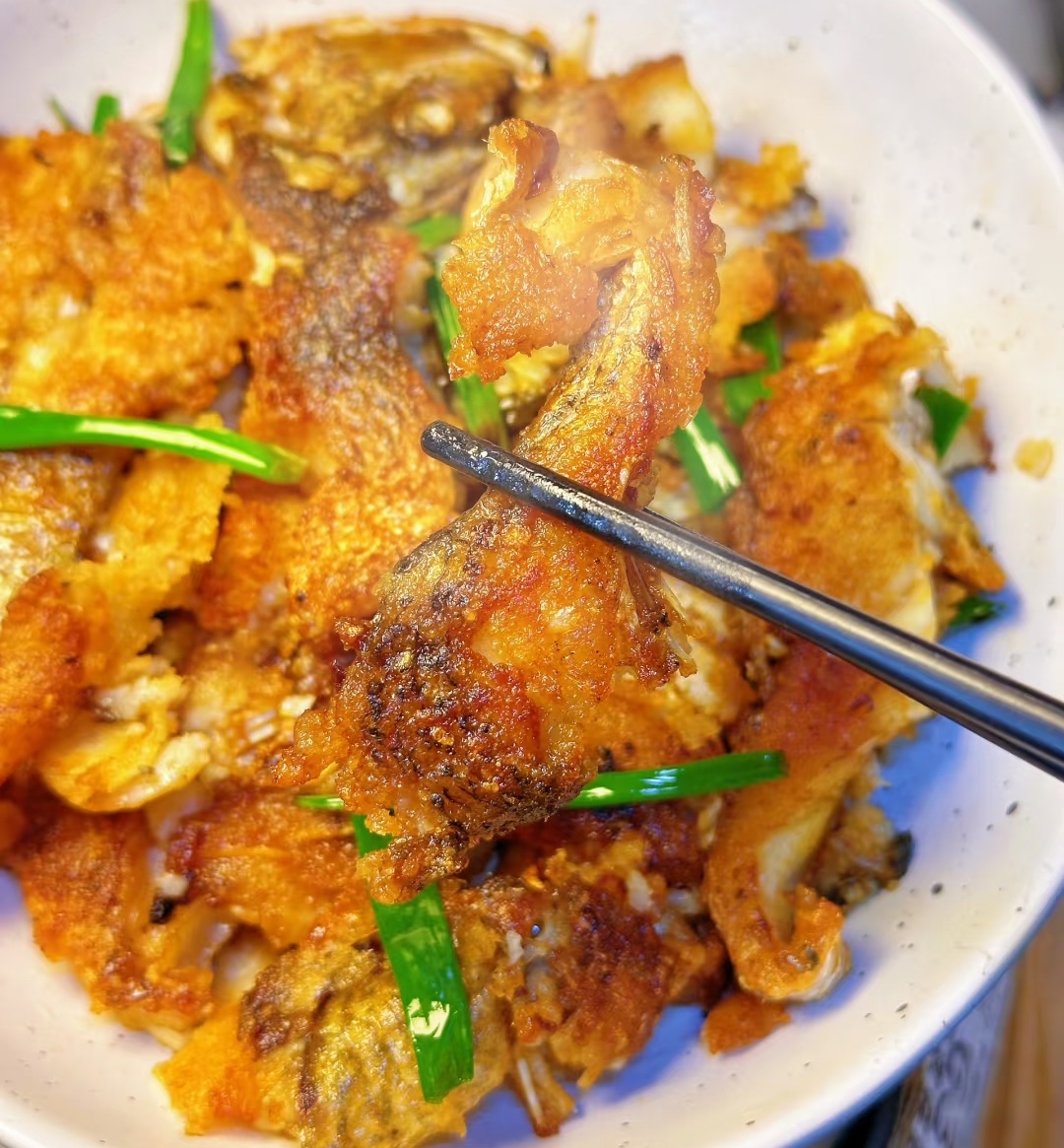 把鱼滑到长盘里,葱绿丝堆在鱼背,像给它戴了顶绿草帽。最后淋上锅里剩下的金汤汁,灯光一打,朋友圈点赞+10086。