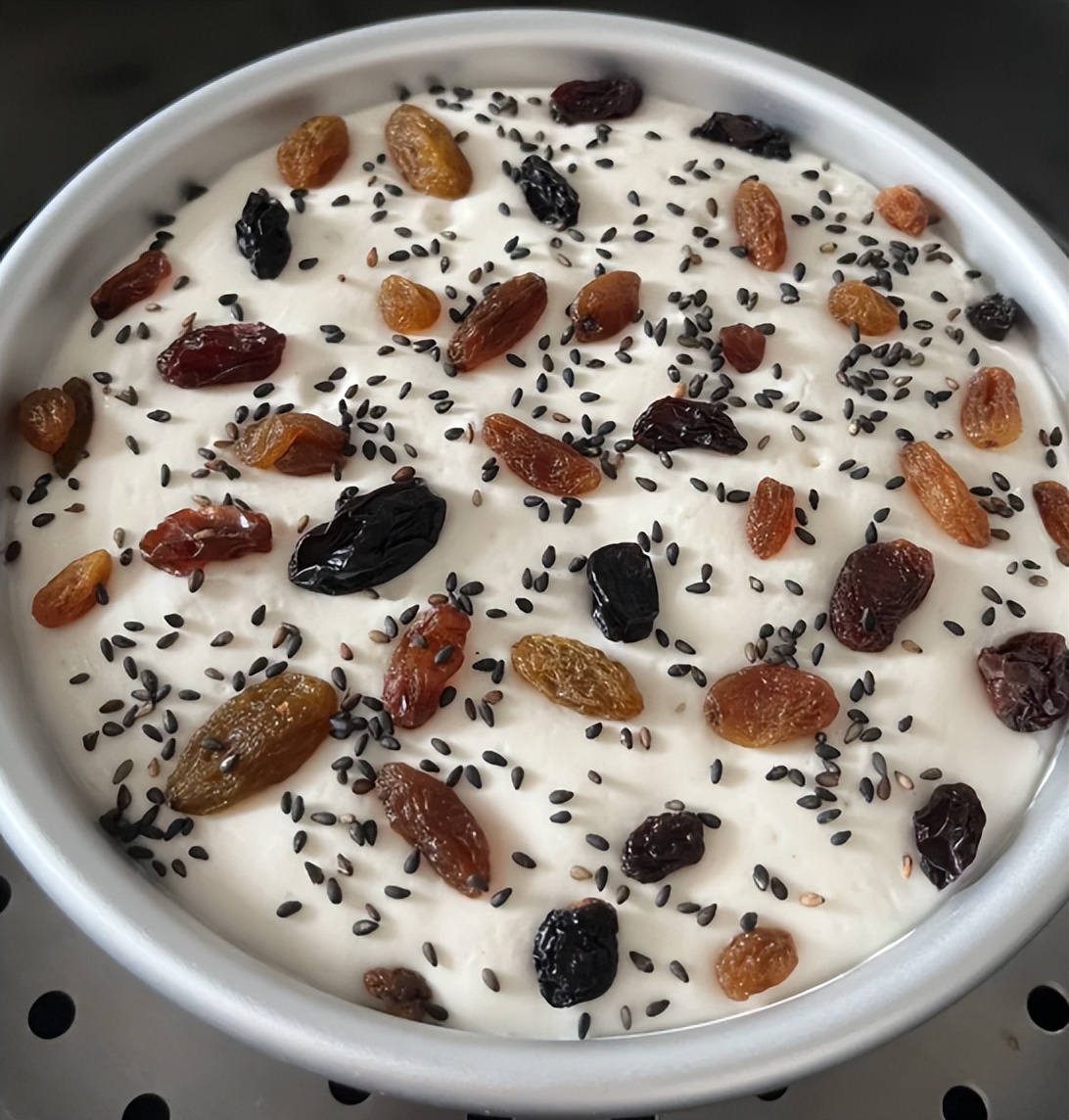 把排气好的米糕倒入容器中,上锅水开蒸30分钟,闷5分钟就可以吃了。