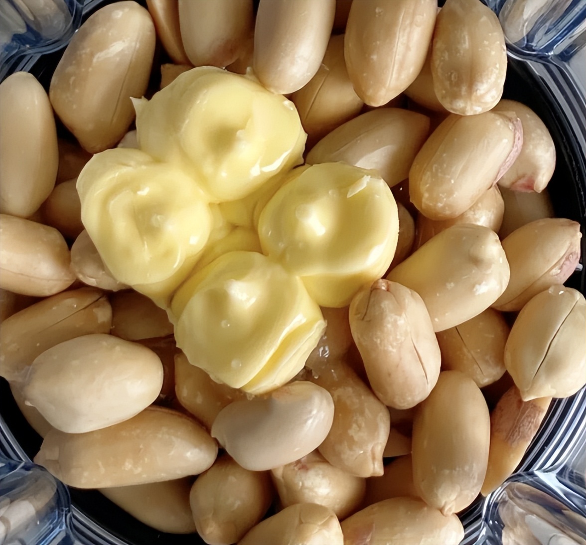 花生剥皮之后,最好用平底锅炒熟,然后再放入破壁机里面。